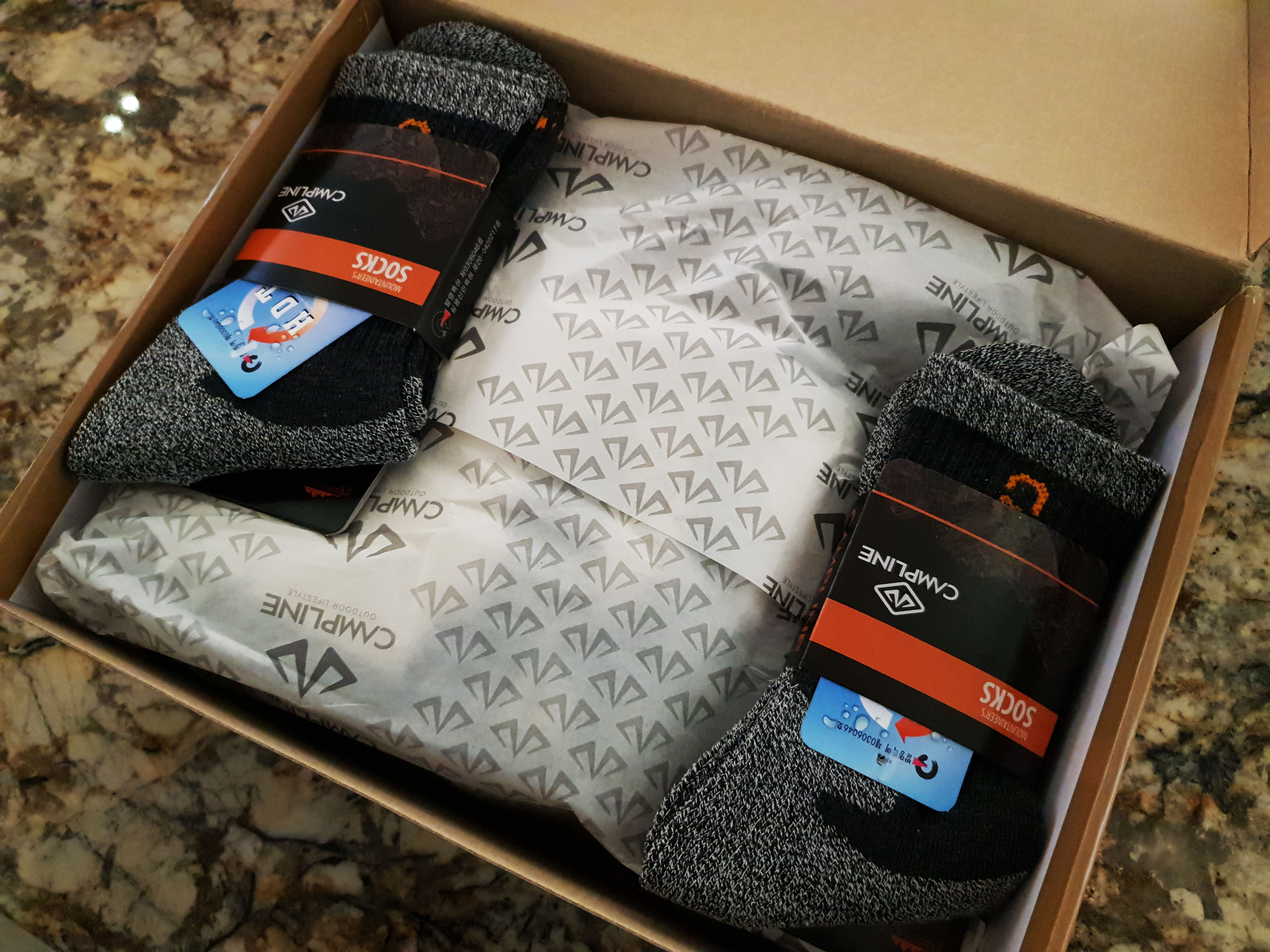 사은품으로 등산양말 두개와 신발 파우지, 신발끈 여분 이렇게 추가로 들어있었습니다.