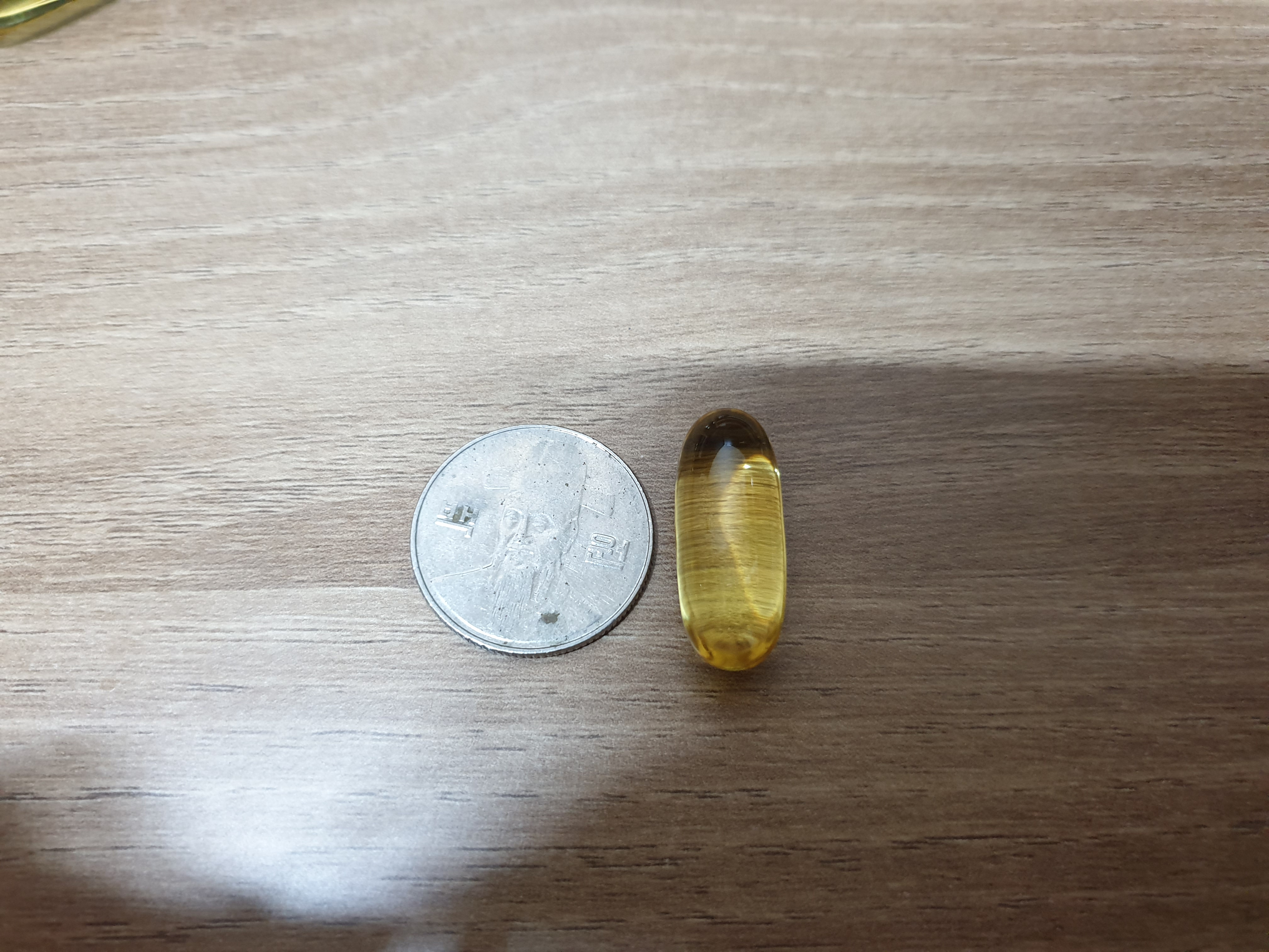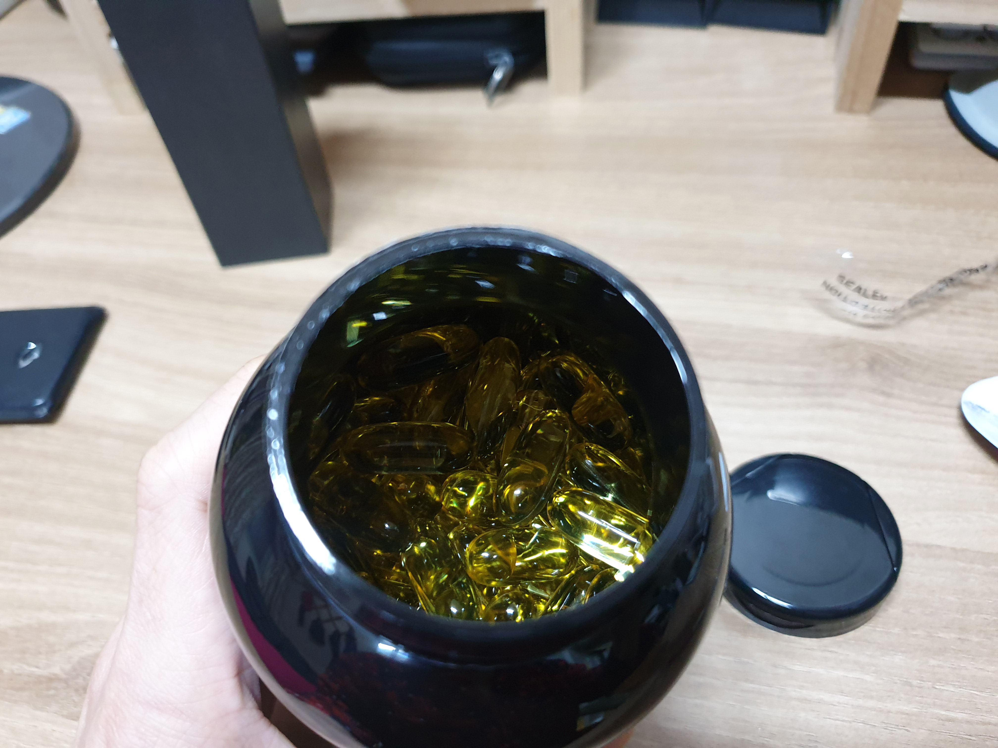 연질 캡슐로 되어있고, 크기는 100원짜리 동전보다 살짝 큰 정도에요.