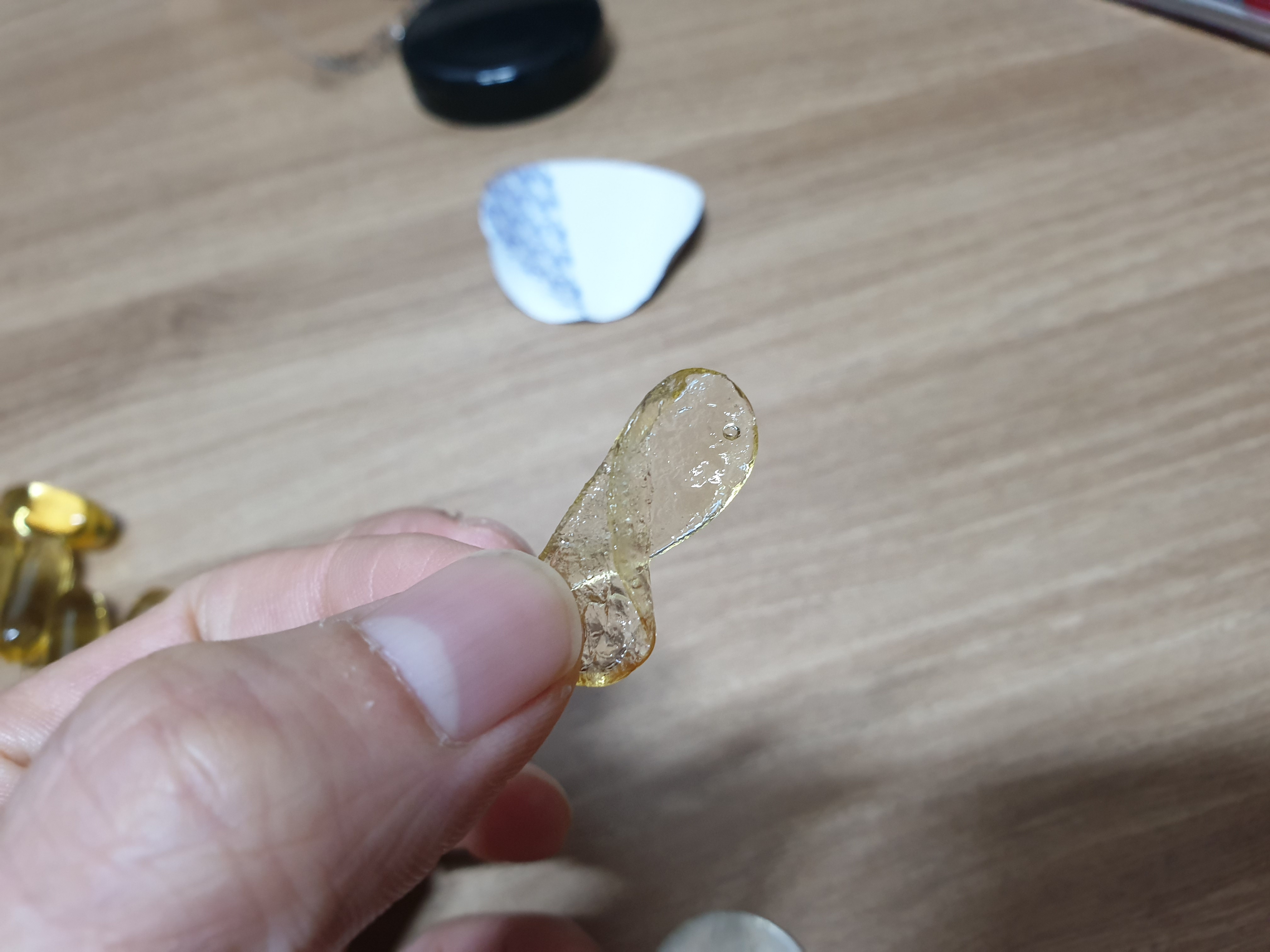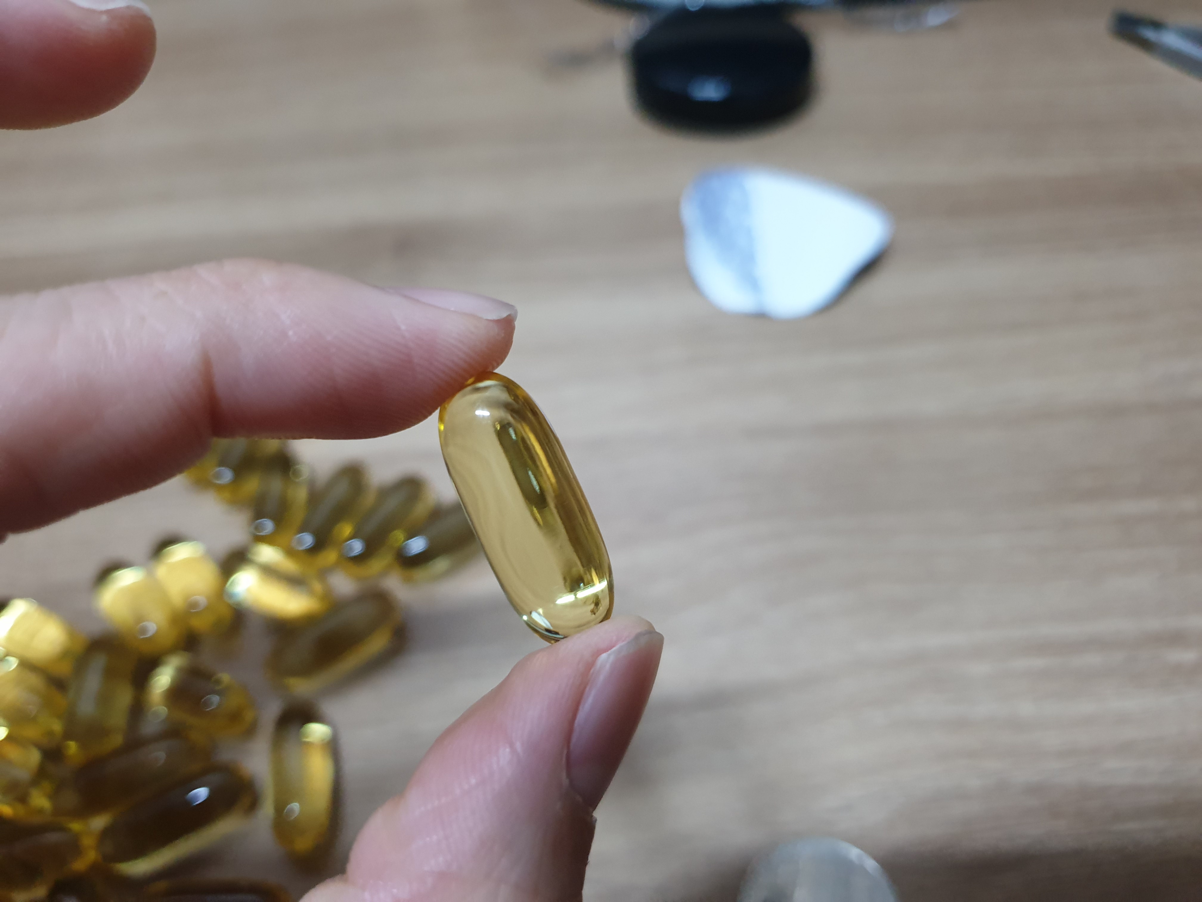 그럴 경우에는 아래 사진과 같이 캡슐을 씹어서 안에 피쉬오일만 먹고 캡슐을 뱉어 버리셔도 되요.