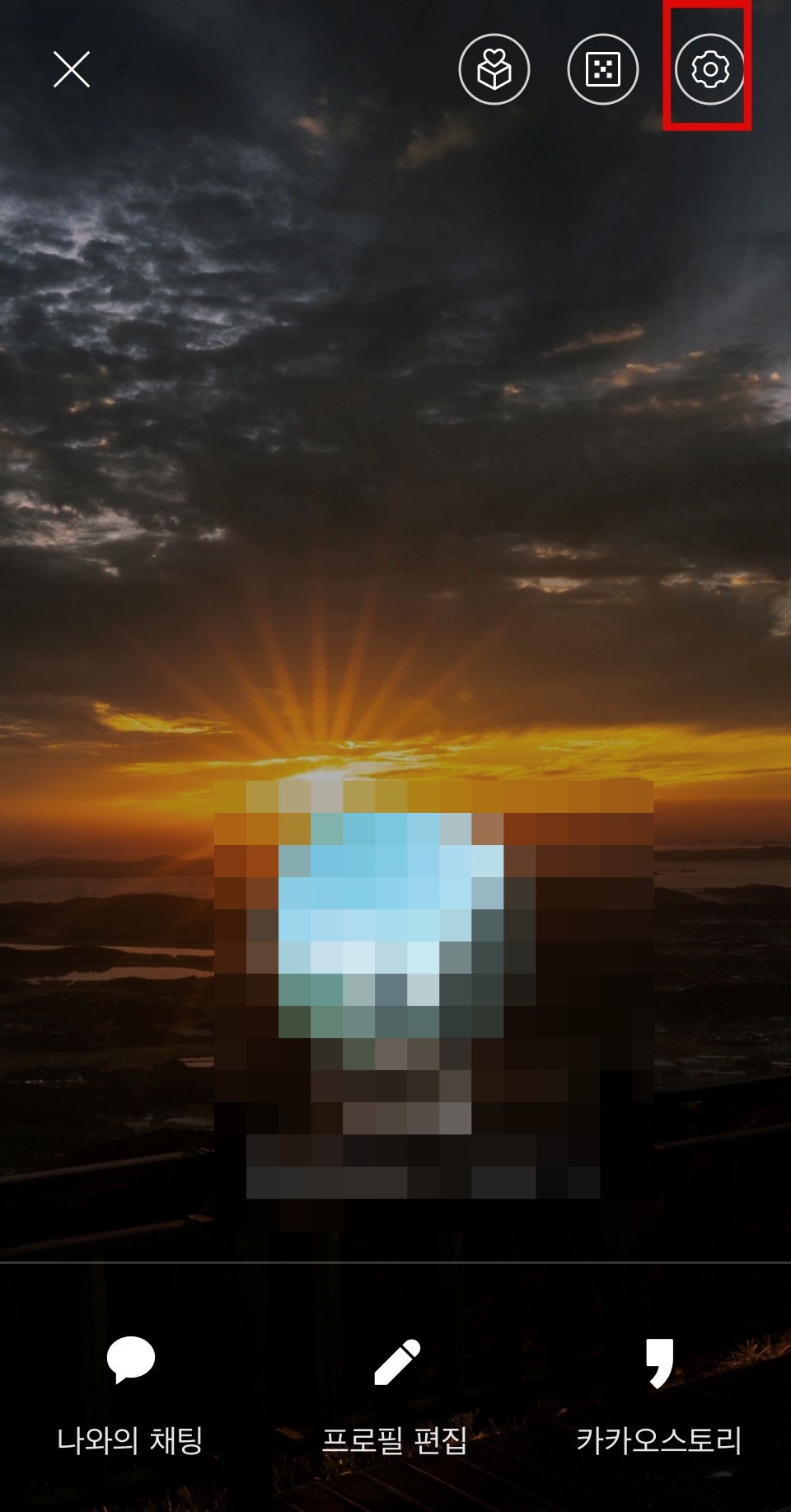 2.이 프로필에서는 나와의 채인 및 프로필 편집 등을 할수 있는 화면입니다. 여기서 위 상단에 톱니바퀴모양을 눌러러서 설정 화면으로 들어가줍니다.
