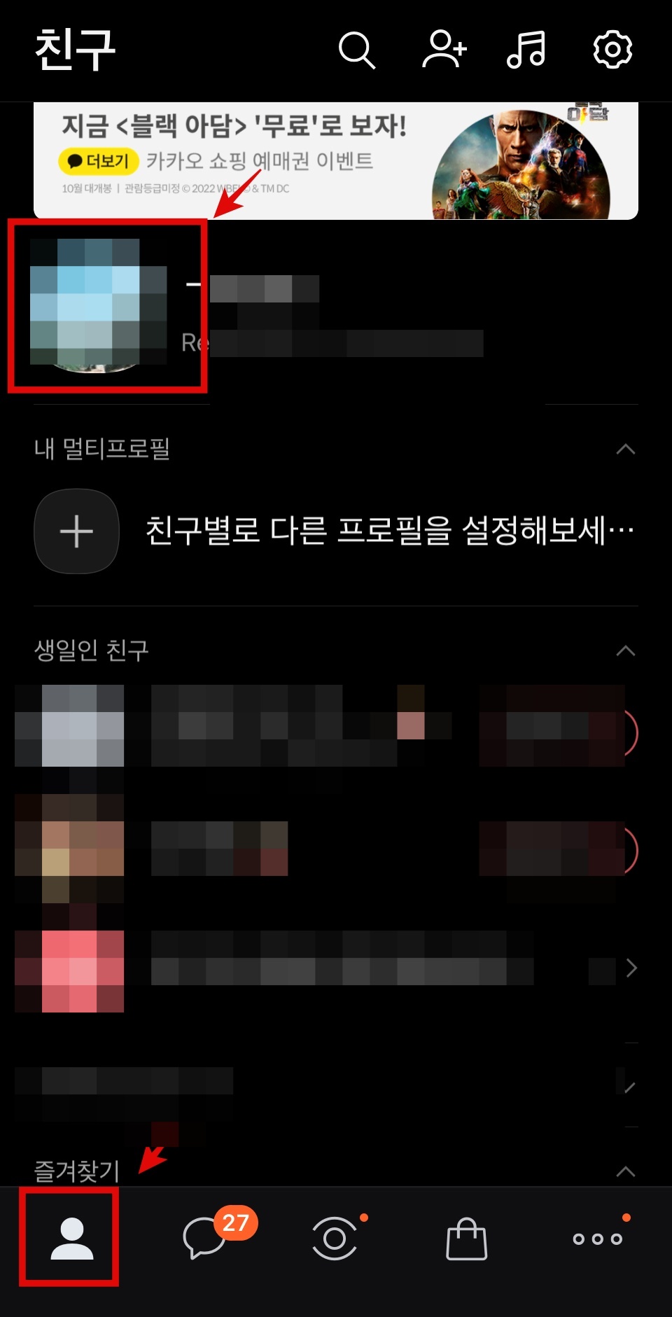 1.가장 먼저 카카오폭 화면에서 좌측 하단에 있는 사람 모양을 눌르게 되면 내 개인 프로필을 상단에서 확인 하실수 있습니다.