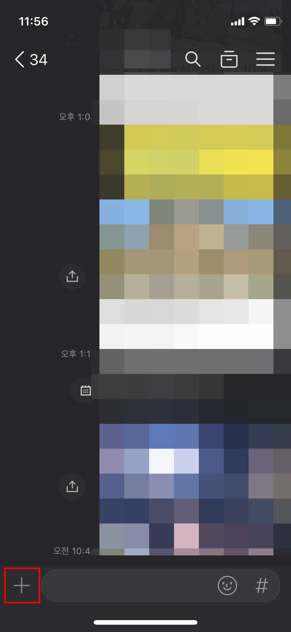 1.채팅방에서 '+'모양을 눌러줍니다.