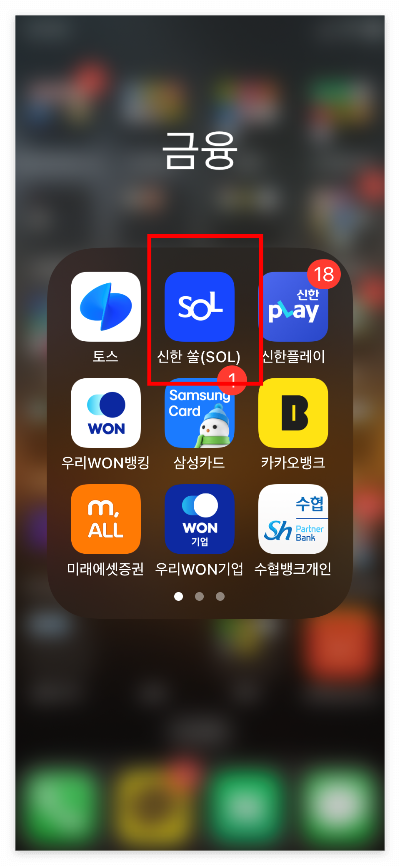 우선 신한은행 통장사본 발급을 위해서 신한 쏠(SOL)앱을 실행시켜 줍니다.