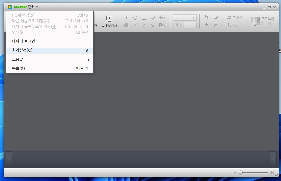 상단의 캡처▼ 부분을 누르면 위와같은 메뉴가 나오는데, 여기서 환경설정을 들어가줍니다.