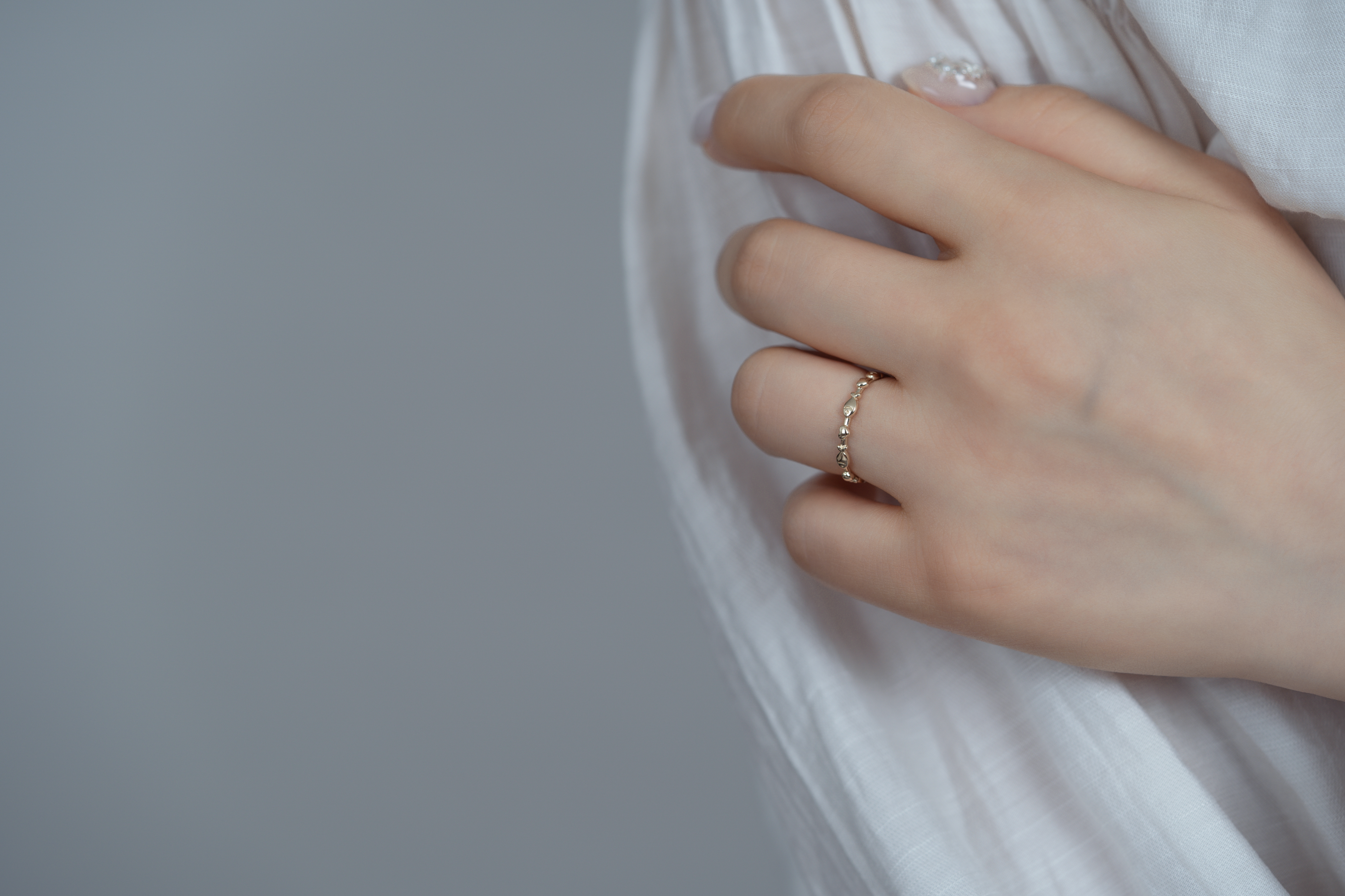 반지가 돌아가도 신경쓰지 않고 예쁘게 착용할 수 있는 특징이 있습니다.
