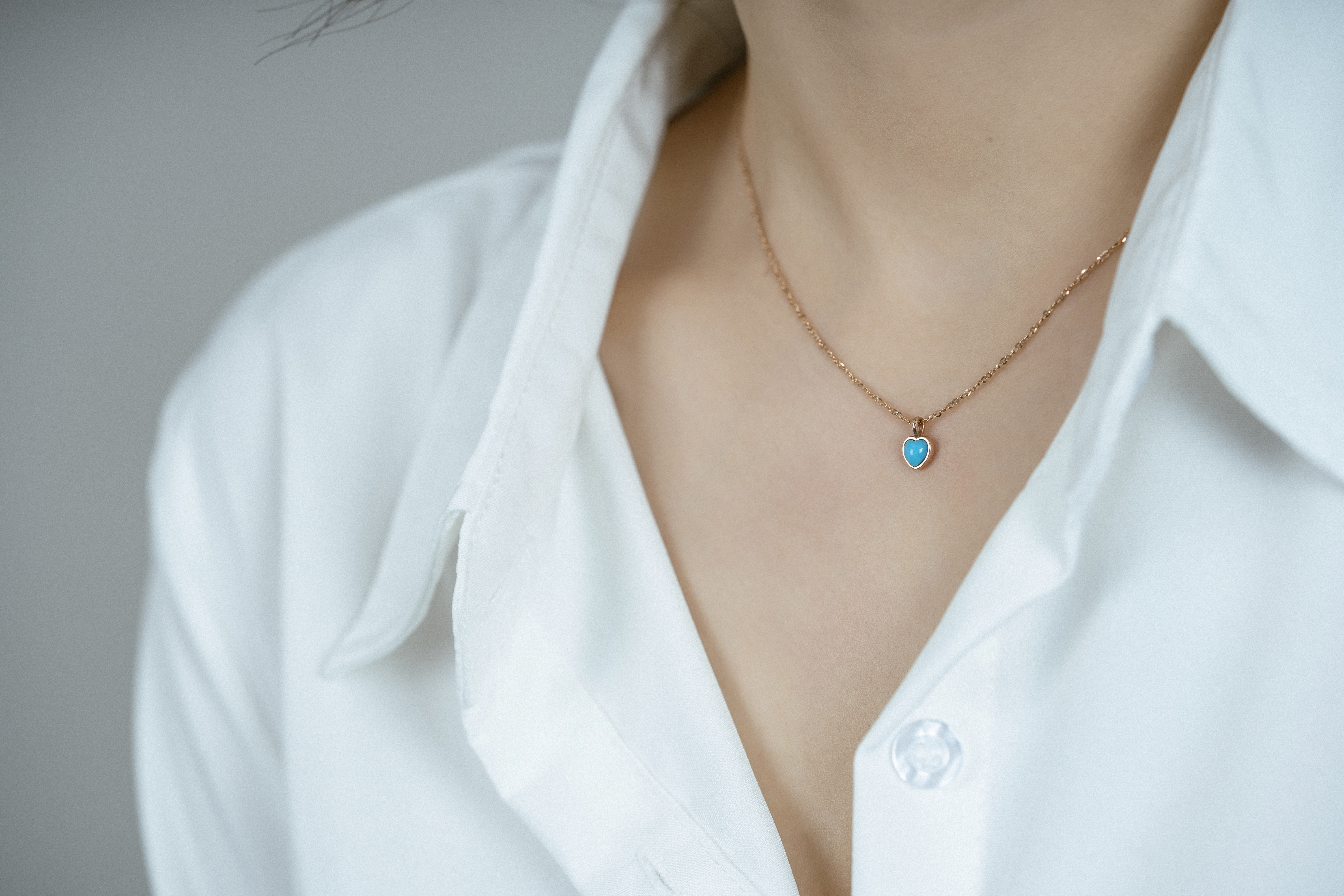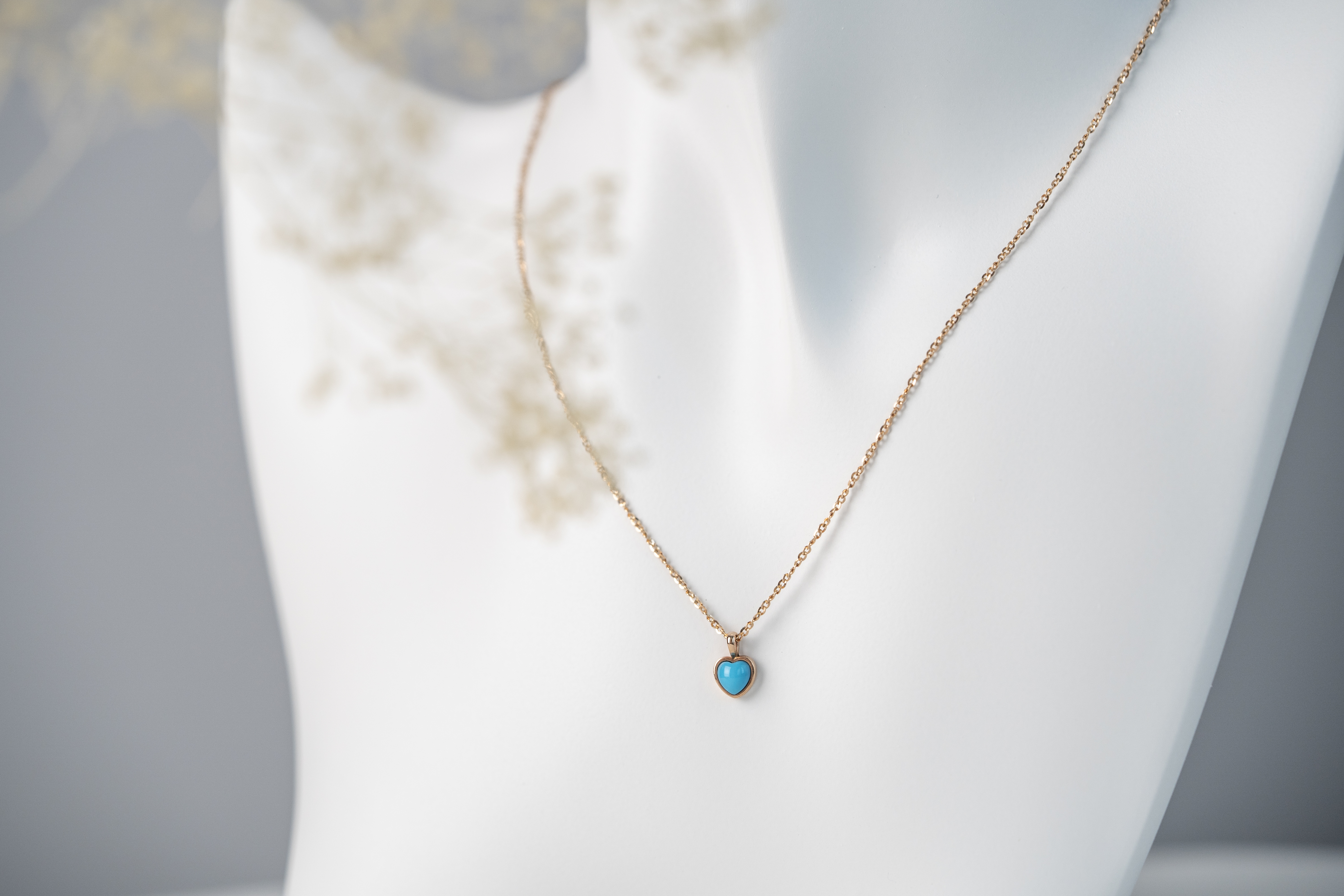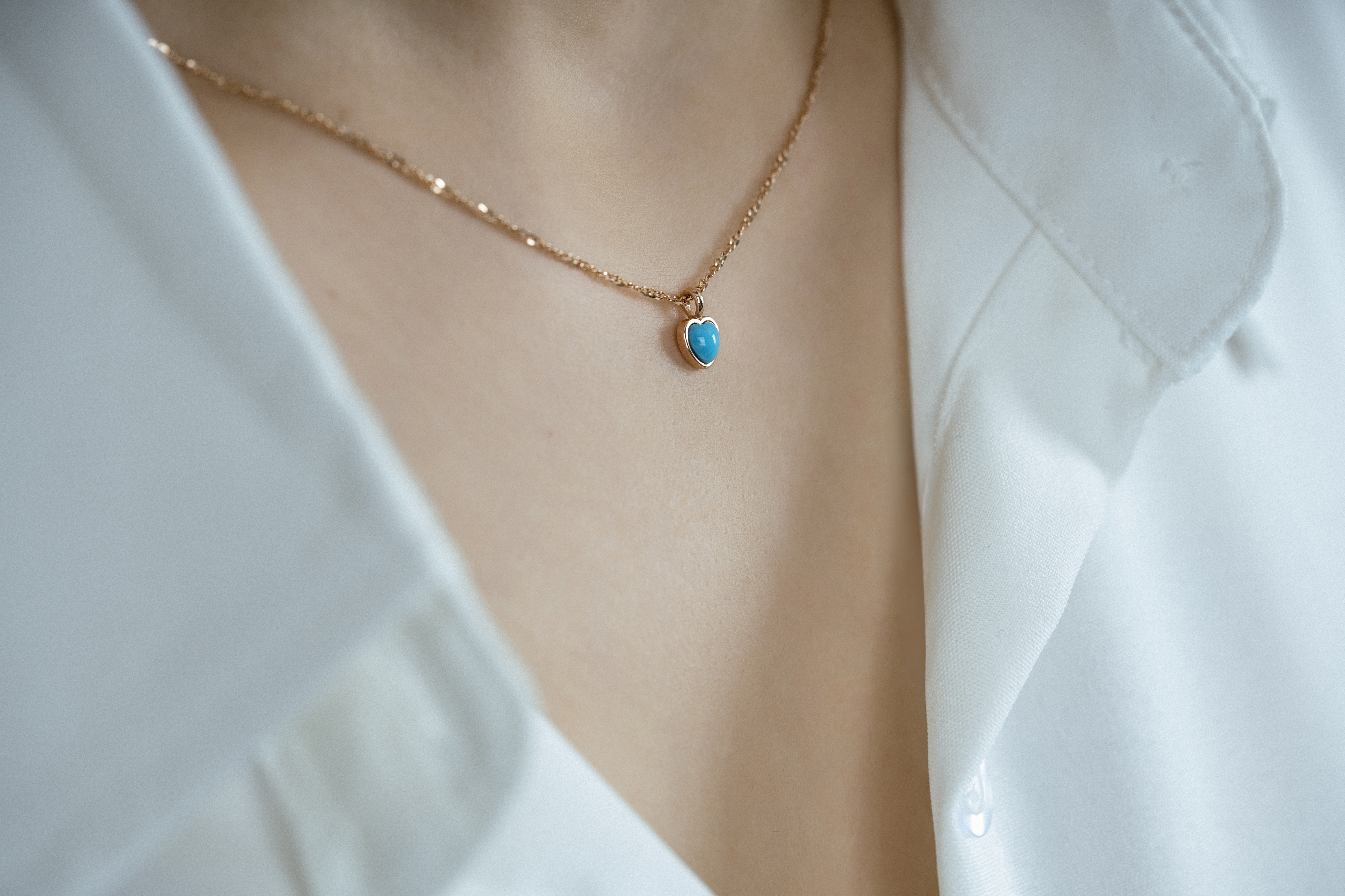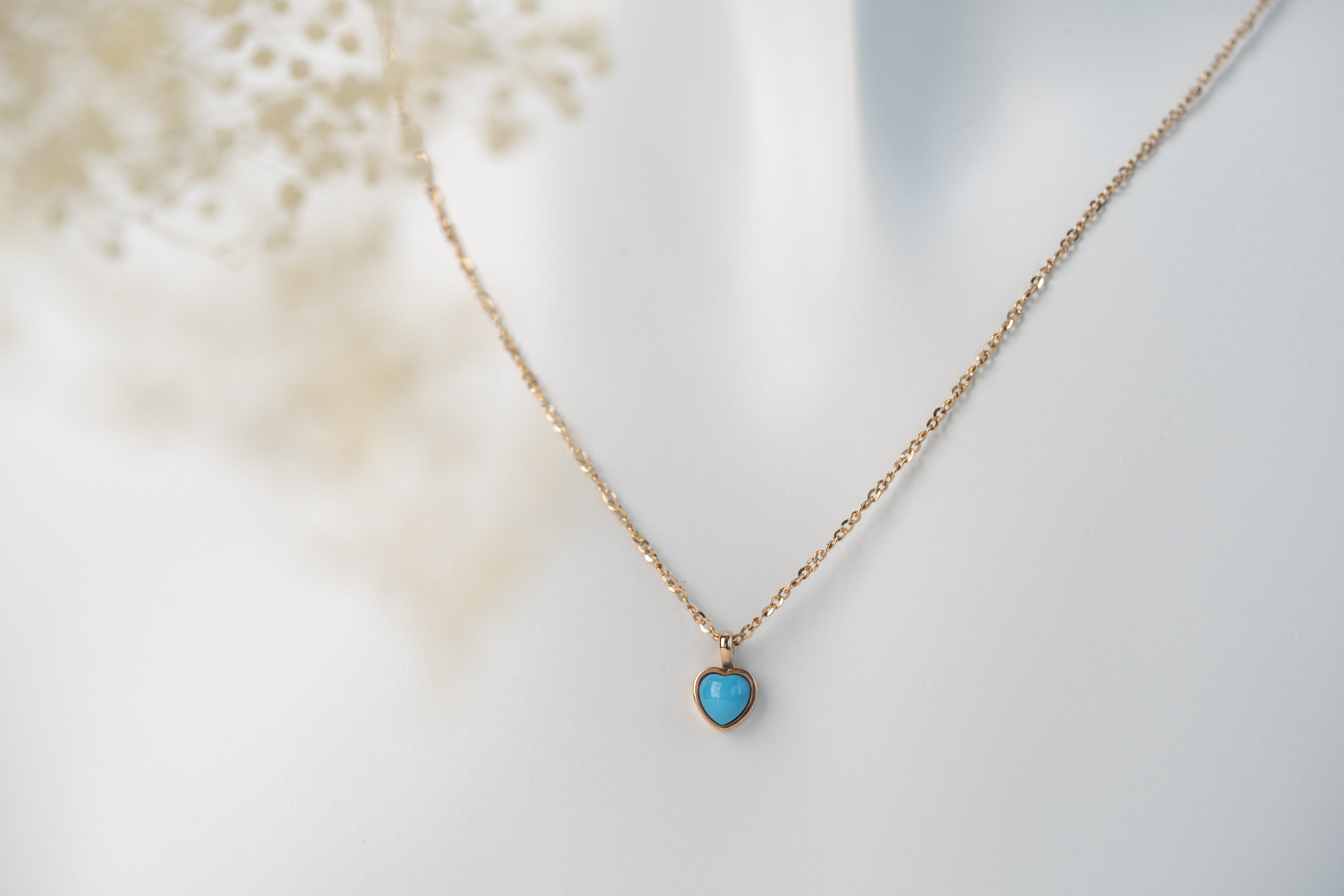 14K로 제작한 하트 터키석 목걸이이입니다.